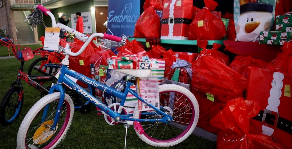 Here is a gallery from an event that Embrace of Celebration hosted on December 23rd, 2022 at the Backlot Apartments. All gifts were donated by Mattamy Homes and given to the residents of the complex and their children.